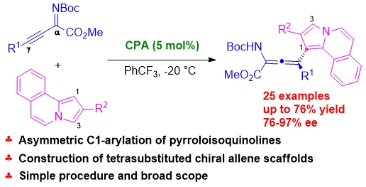 27)Xuan Zhang, Xu-Hua Jiang, Chun-Dong Huang, Cheng Gao, Shao-Fei Ni*, and Qi-Jian Ni*. Organocatalytic Access to C1-Functionalized Indolizines via Remote Stereocontrolled Construction of Axially Chiral Allenes. Chin. J. Chem. 2025, 43, 2749-2755.link