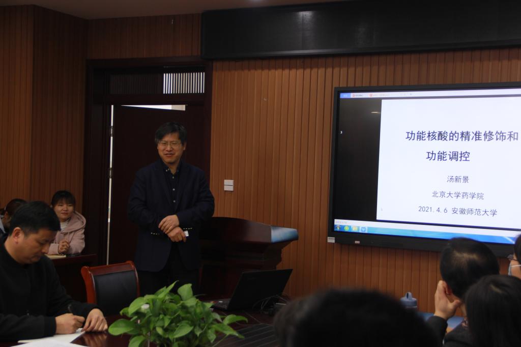 2021年4月6日上午,北京大学药学院汤新景教授应邀来我校讲学。报告会在花津校区礼勤楼702室举行,由篮球比分手机