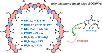 1. 全共轭噻吩稠合BODIPY寡聚体: