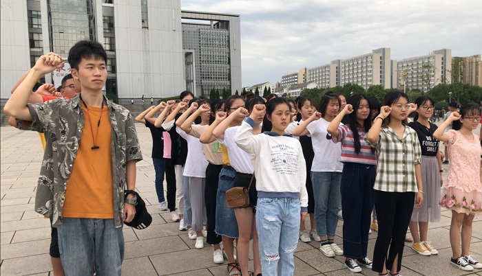 9月18日,2018级化学工程与工艺专业全体同学来到国旗下,齐声高唱《义勇军进行曲》以及《光荣啊,中国共青团》,潘新安和朱佳佳同学发表国旗下的演讲。两位同学在演讲中提到李大钊先生的“以青春之我,创造青春之家庭,青春之国家,青春之民族,青春之人类,青春之地球,青春之宇宙,资以乐其无涯之生”。这篇作于1916年的文章,似洪钟大吕,揭示着青春之流的到来,彰显“青春之我”的重要性。作为新时代中国青年,我们应当在中国共产党的领导下,为实现中华民族伟大复兴而奋斗。