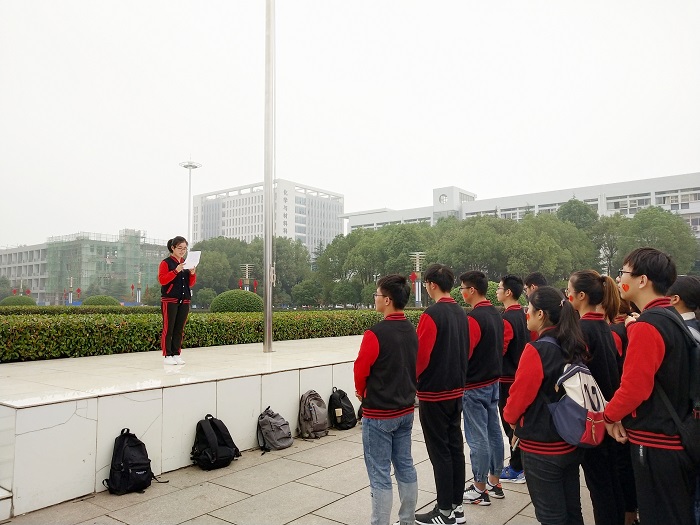 10月12日上午,化学(师范)专业全体同学身着院服齐聚敬文图书馆东门广场。伴随着国歌声的响起,同学们一个个都昂首挺胸,饱含深情地凝视着国旗,仿佛在思索着革命先烈的故事和这70年走来的风风雨雨。国旗下,团支书张莲莲同学进行了慷慨激昂的演讲,以此向祖国母亲致以诚挚的生日祝福,并表达了对祖国美好未来的殷切憧憬。