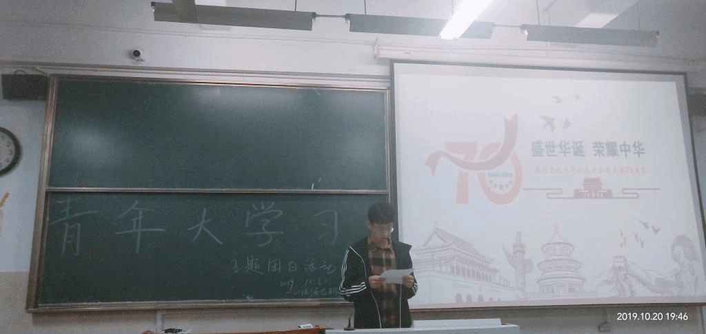 本网讯(应化二班 殷文刚)2019年10月20日晚七点半,一八级应化二班举行了“我与祖国共奋进”暨“第六季青年大学习总结”主题团日活动。本次活动主要由三个部分组成。