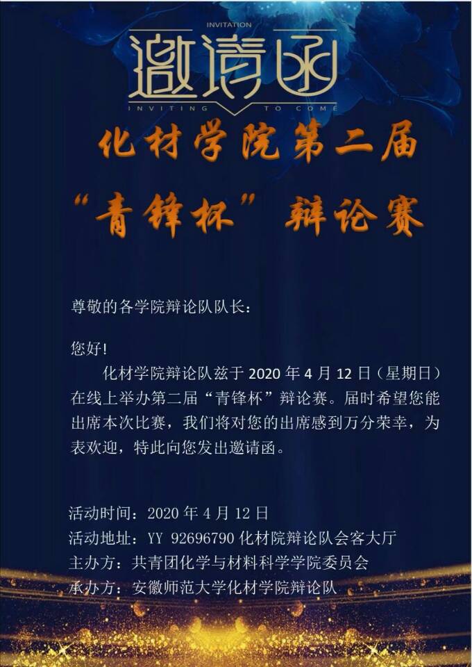 辩论队承办的第二届“青锋杯”辩论赛在YY线上平台隆重举行,比赛特邀物电学院、生科学院、文学院、法学院、经管学院、教科学院、历社学院和安徽师范大学辩论者爱好协会等10个队伍参与其中,并邀请物电学院陈紫薇、篮球比分手机