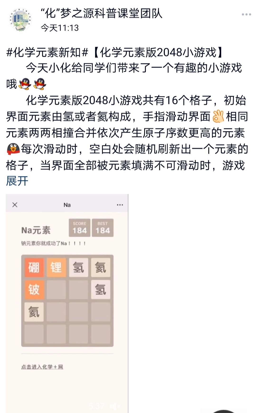 为及时检验学生们的教学成果,并第一时间完善团队成员教学过程中的不足之处。团队成员群策群力,制作了调查问卷及时掌握学生的学习情况;举办了阶段性小测验和课堂笔记大赛,旨在通过化学知识竞答和课堂笔记整理,巩固学生们之前所学的化学知识;推荐化学元素版2048、烧杯小游戏,让学生们足不出户,在指尖上领略化学反应的魅力。此外,团队成员汪雨薇还走进线下课堂,和学生们积极互动,为学生答疑解惑,面对面了解学生在学习化学过程中的面临的困难。