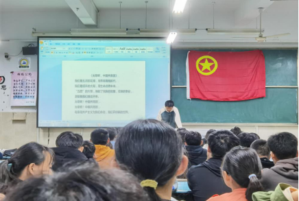 “我们是五月的花海,用青春拥抱时代...”由团小组组长巫睿教大家学唱中国共青团团歌,由胡宏伟作词,激情高昂地唱出了我们每个人对共青团的热爱,增强了团员意识和社会责任感。