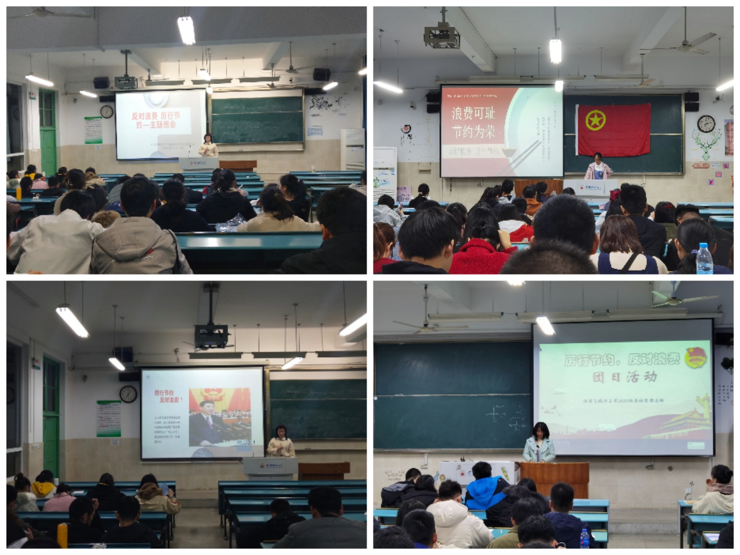 在主题班会上,各班团支书带领支部同学集中学习了当今餐饮浪费现象及以及国家出台的关于治理浪费的相关措施,同学们集中讨论了光盘行动的重要性,并就餐饮浪费现象发表了自己的观点,各班级通过观看学习视频、介绍勤俭节约典范事迹、组织光盘行动的知识答题竞赛等形式,加深了同学们对“厉行节约,反对浪费”相关知识的理解。