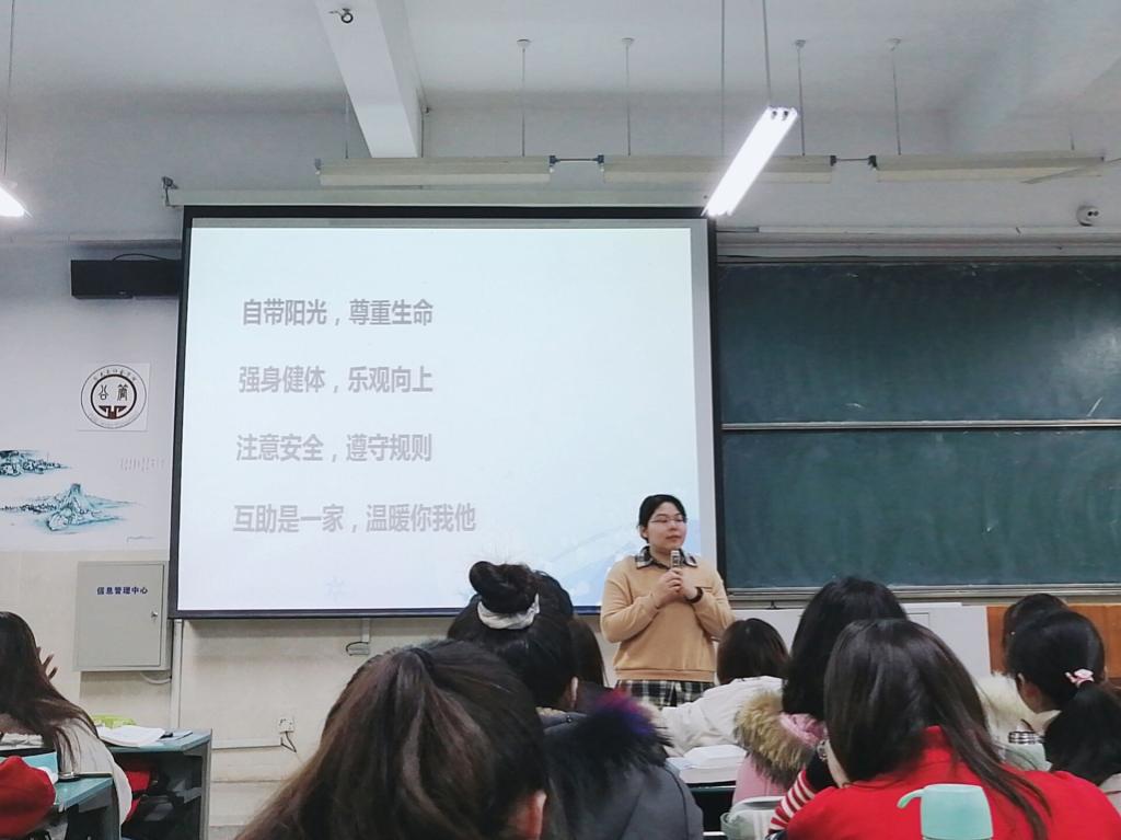 2020年12月16日晚上7时,19级化学专业辅导员周冬冬老师在2010502教室召开了“做一个温暖的人”主题班会,围绕身体健康、心理健康、安全和学业等多方面开展本次班会。主要包括以下四个方面: