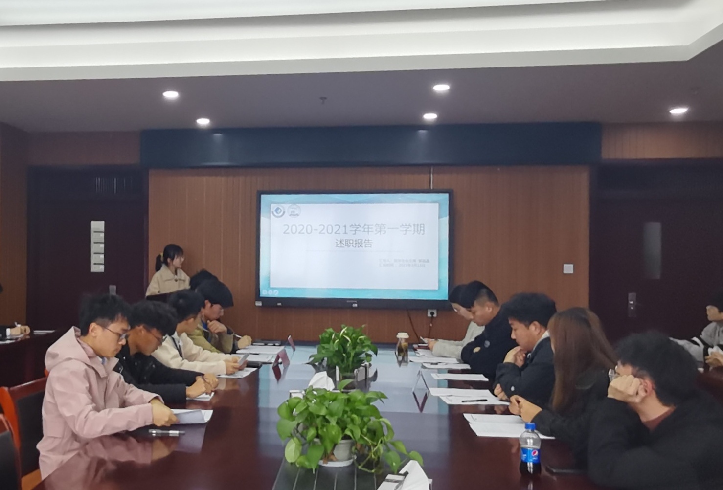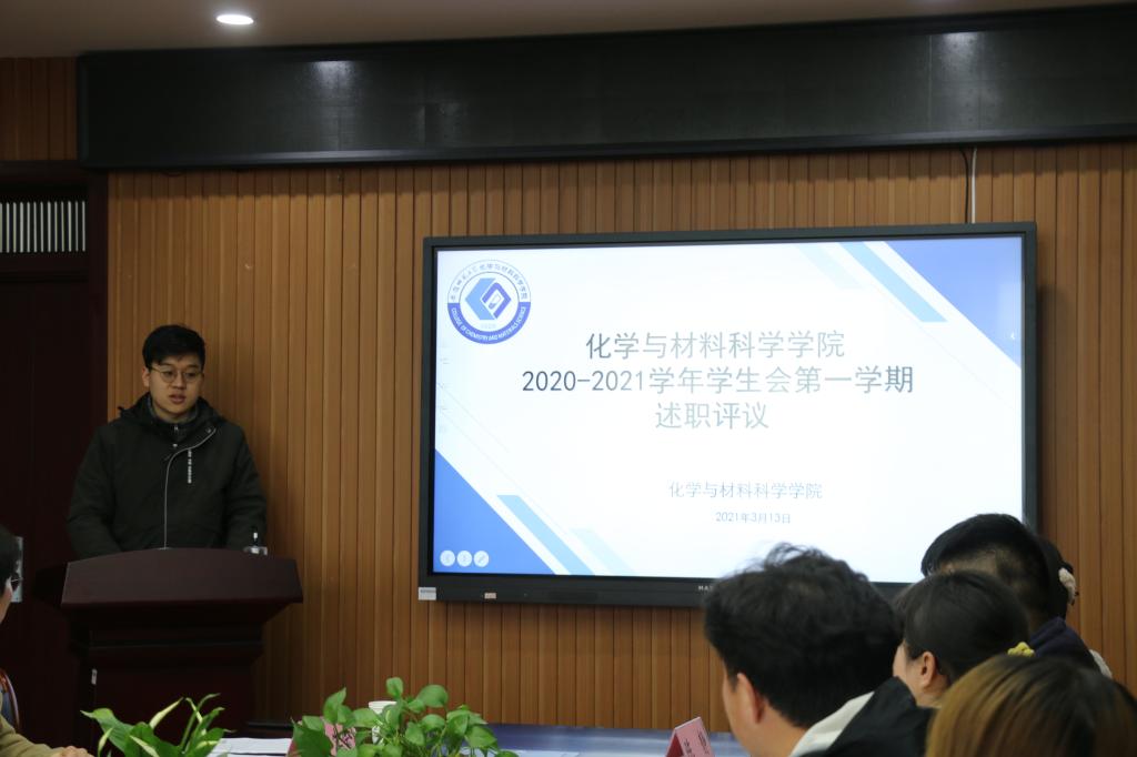 于2021年3月13日下午两点在礼勤楼702会议室召开2020—2021学年第一学期学生会述职评议报告会。出席此次会议的有院团委副书记陈静、校学生会执行主席季行健、院学生会主席团成员、各部门负责人及学生会全体工作人员,此次会议由综合部部长章志诚主持。