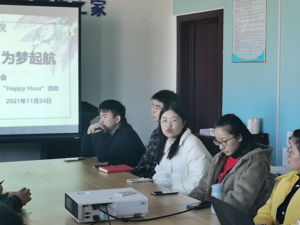 殷乐)为了帮助2021级新生尽快适应大学生活,掌握正确学习方法,进一步调动学生学习的积极性,营造珍惜时间、刻苦钻研的氛围,2021年11月24日下午,院学生会生活权益部在717活动室举办“因‘材’相聚,为梦起航”为主题的第十二期“Happy hour”活动,来自2018级、2019级优秀学生代表们与2021级新生代表进行学习、工作、生活上的经验分享,共话成长心得。本次新老生经验交流会由院学生会主席团汝晓玉主持,