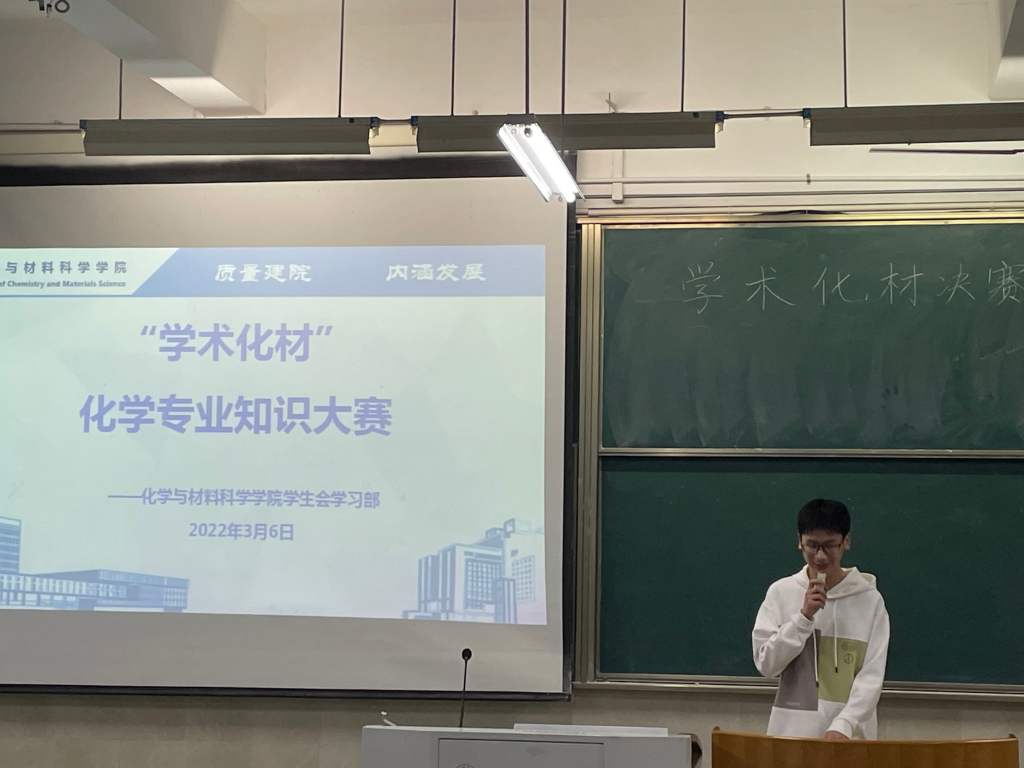 于3月11日晚七点在行知楼2010401教室举办了“学术化材”化学专业知识大赛。本次比赛由院学生会学习部主办,面向18、19、20级同学开展。