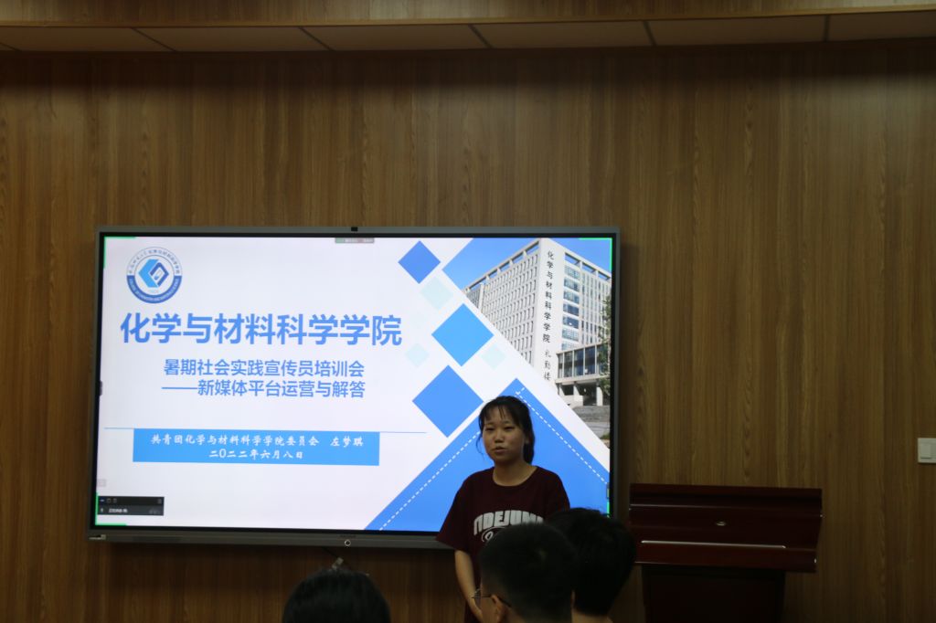 6月8日晚7点,学院于礼勤楼707会议室举办了宣传员培训会,本次会议详细介绍了新闻稿投稿、微信推文推送等宣传平台要求,院团委学生副书记吴泓婧就新闻稿的撰写以及投稿方式进行了详细的说明,同时介绍了活动照片的拍摄与选取要求;宣传部副部长左梦琪、吴星悦详细介绍了微信推文和活动海报的制作方法,同时详细解读了暑期社会实践团队的宣传报道方案。