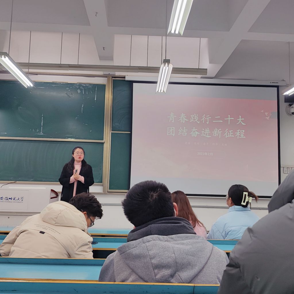 会前,辅导员陈静以党的二十大报告中对青年的寄语为主题,组织全体同学学习党的二十大精神,勉励毕业班同学在新学期发扬斗争精神,团结起来共同进步。陈静从理论学习、个人规划、考研复试、就业准备、近期重点工作提醒几个方面为同学们进行了详细的解答。关于毕业,她希望全体同学要立足当下,明确个人目标,保持奋斗,做好大创结题、毕业论文等各项基础工作。关于考研就业,她建议有较大的把握进入复试的同学们要珍惜时间,明确努力方向,积极复习复试科目;分数不占优势的同学应尽早把握机遇,详细了解调剂的相关事宜;有就业意向的同学要把握好即将到来的大型春招和学院专场招聘会,积极就业。