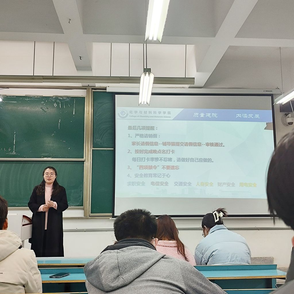 陈静老师还梳理了毕业班近期重点工作,并从安全管理和遵规守纪的角度,对毕业班学生提出了严格要求,希望同学们遵守校规校纪,参加期末考试的同学要严肃考风,诚信考试,毕业季要在求职安全、交通安全、财产安全、个人信息安全等多方面提高意识,注意劳逸结合,注重身体健康。