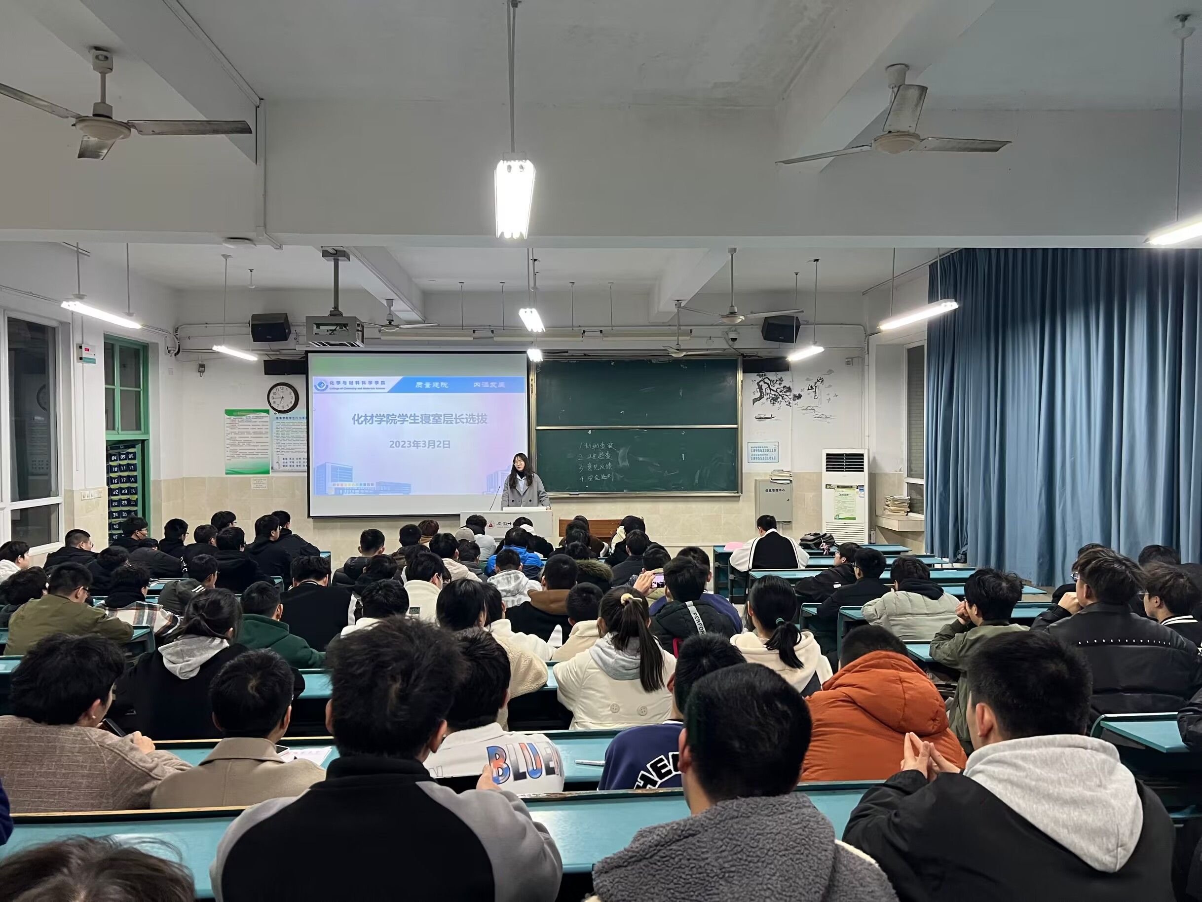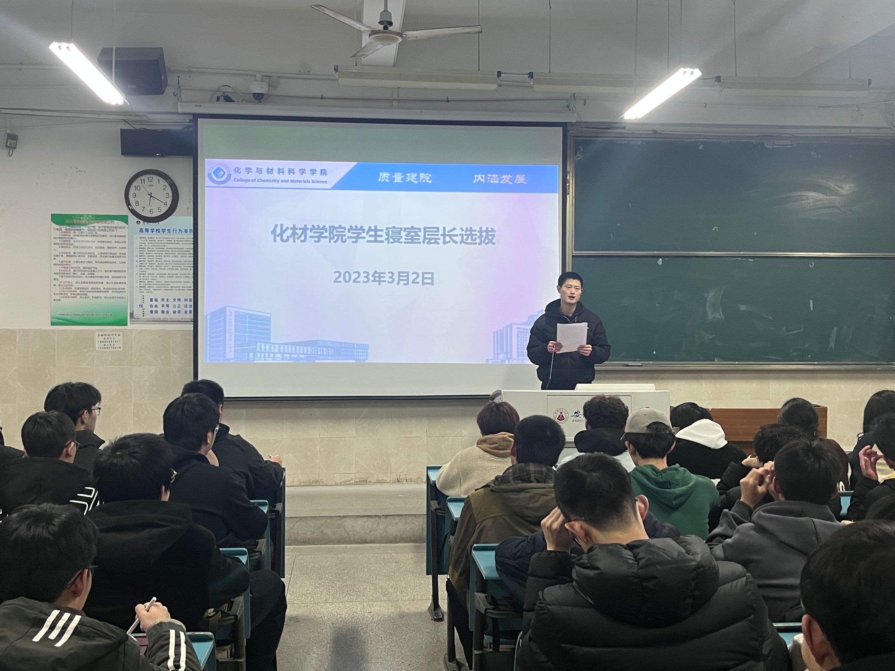 学生寝室层长选拔”交流会,4栋男生宿舍所在的2022级各专业各班级班长、寝室长及生活委员全员参与,本次会议由辅导员张浩、吴钰濛共同主持。
