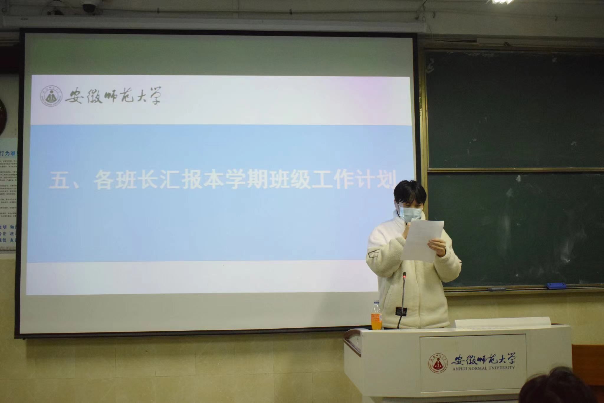 勤交流,促合作,成团结班体。各班班长上台进行发言,对各班上学期的班级状况进行总结反思,并制定本学期班级工作计划。班委间进行答疑交流,共同交流解决问题,意在创造更好的班集体。