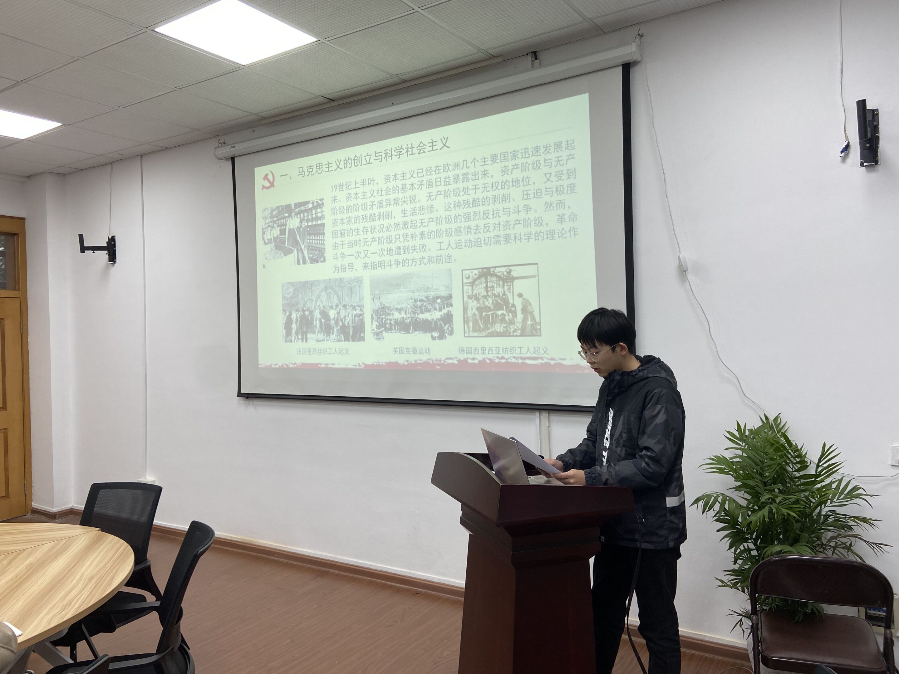 支委赵蒙蒙领学《党的二十大学习辅导百问》中加快实现高水平科技自立自强章节,习近平总书记指出实现高水平科技自立自强是国家强盛和民族复兴的战略基石。纵观人类发展史,创新始终是一个国家、一个民族发展的不竭动力和生产力提升的关键要素。朱会凌和吴泓婧同学围绕党的二十大精神进行宣讲,勉励大家作为新时代下的新青年,要更应坚定自己的理想信念、在奋进中锤炼品格、在学习中增长才干,以生命不息、奋斗不止的精神开拓创造、以能为创新、常为创新的要求磨砺自己。