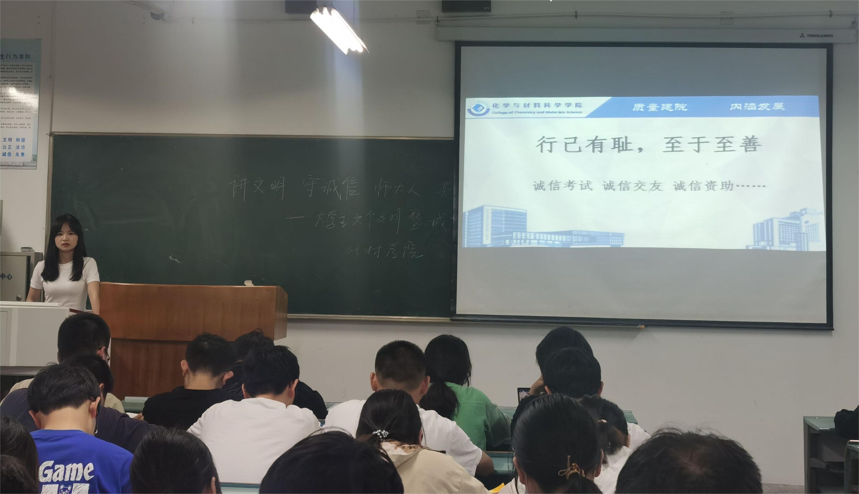 诚信是做人的基本准则,是大学生安身立命的关键。付娜老师强调了诚实守信的重要性,呼吁同学们在生活中严格要求自己,做到“行己有耻,止于至善”。她强调在日常生活中应诚信交友、在贫困奖助评选过程中应诚信受助,在即将到来的期末考试中应诚信考试等等。