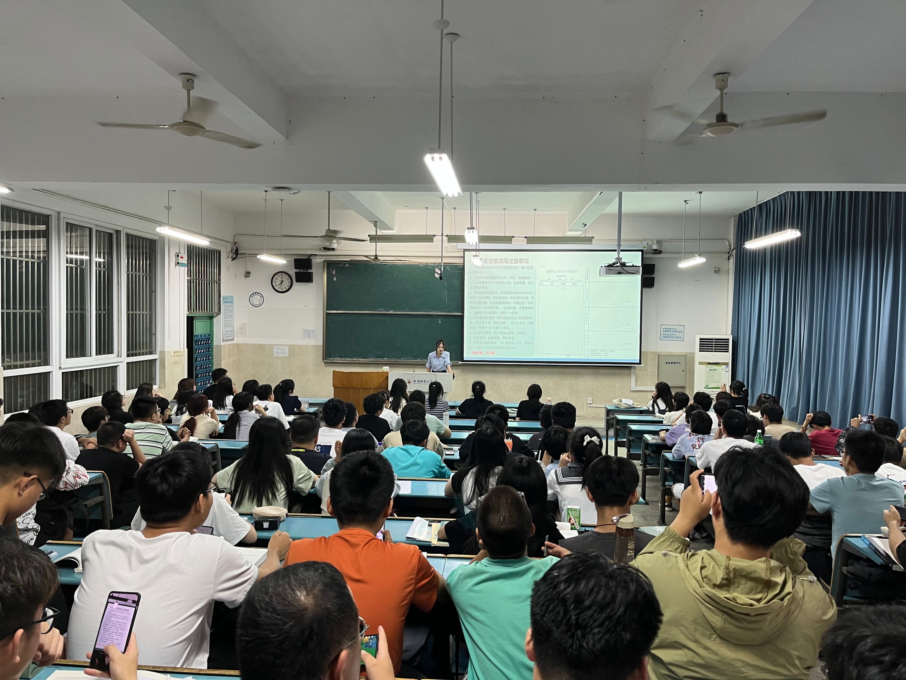 李汝、王文辉)为帮助同学们尽快了解综合测评细则,推进综合测评的正常进行,并安排新学期的教学工作,2023年9月3日晚,2022级材料化学专业全体同学在2010301教室参加了综合测评主题班会,会议由辅导员李汝主持。
