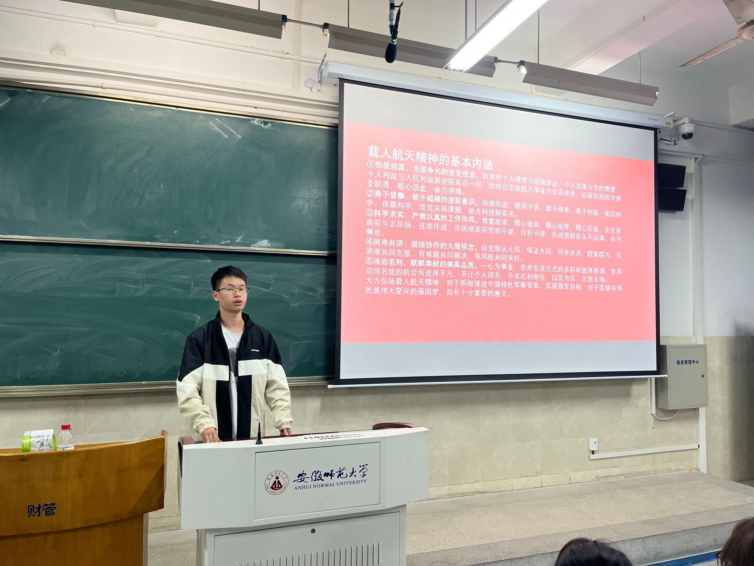 2022级材料化学1班思政委员尹嘉森和2班思政委员余睿雅在辅导员李汝的指导下,在1号教学楼501教室组织了一场别开生面的学习活动,带领学生们共同探讨了中国的科研伟业,旨在传承“两弹一星”精神与载人航天精神,以激励学生们在星光璀璨的未来,继续努力学习,探索材料化学的奥秘。