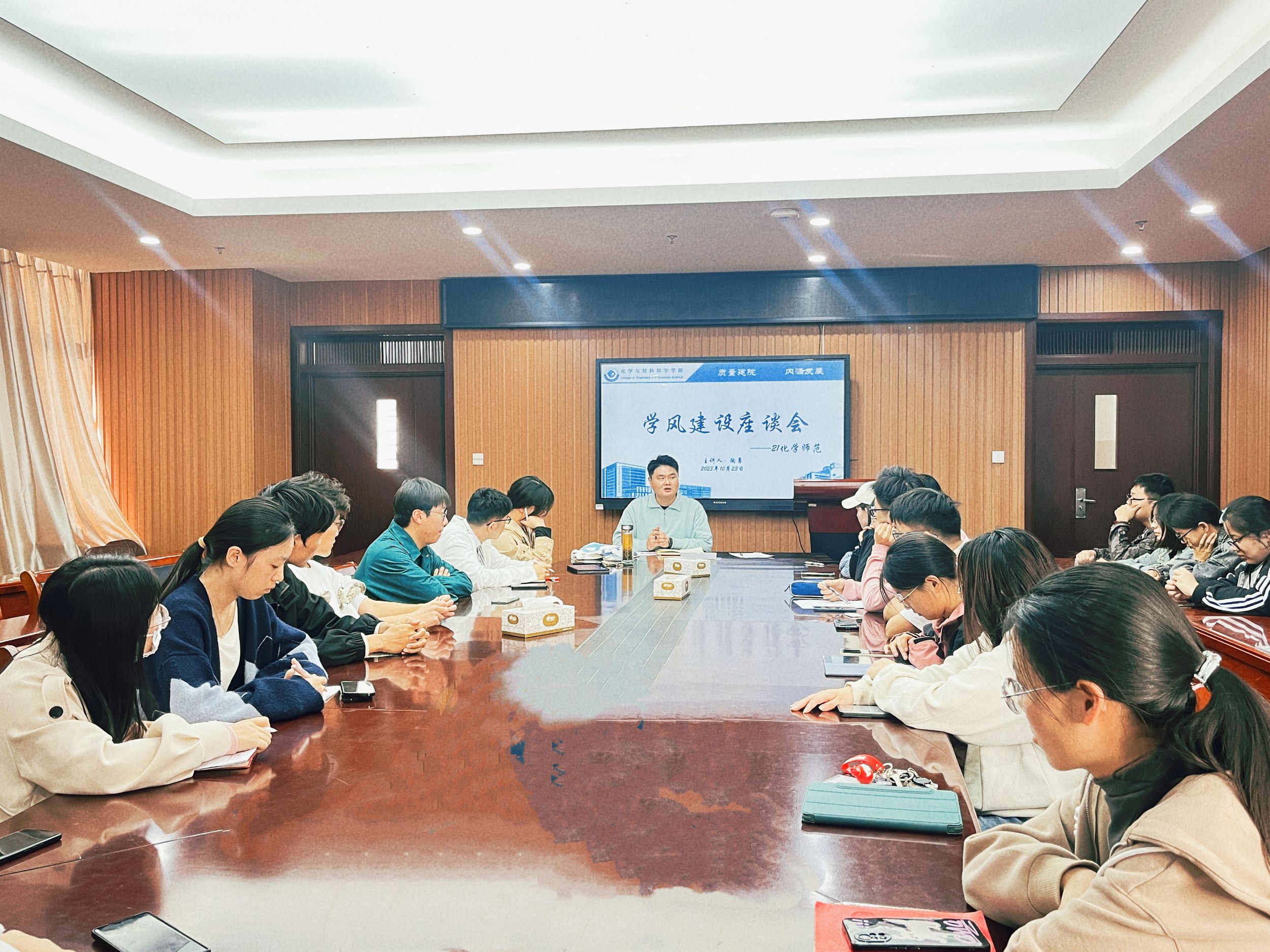 余愿、陶勇)为积极响应《安徽师范大学大学生护航行动计划》号召,着力解决学生学业发展、身心健康等方面面临的实际问题,持续推进我院学风建设,营造优良学习氛围,2023年10月23日下午在礼勤楼702会议室,辅导员陶勇老师为2021级化学师范专业部分学业困难学生开展学风建设专题座谈会,各班级班长、学习委员列席会议。