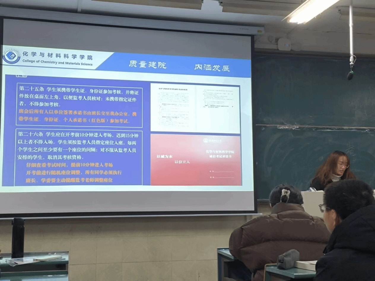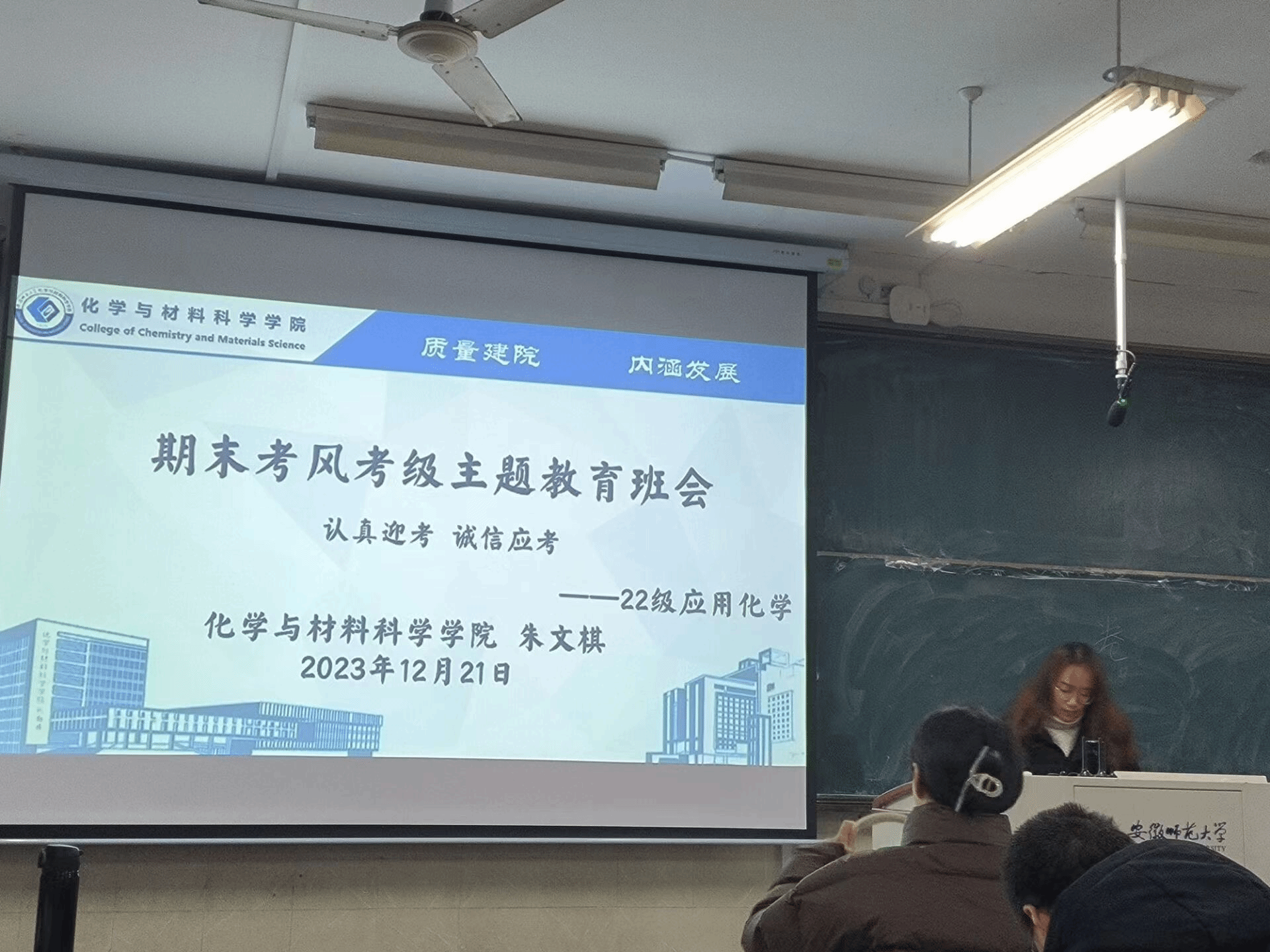 许静媛)2023年12月21日,在2010602教室由朱文棋老师为应用化学专业的同学开了一次关于期末考风考纪主题教育班会。