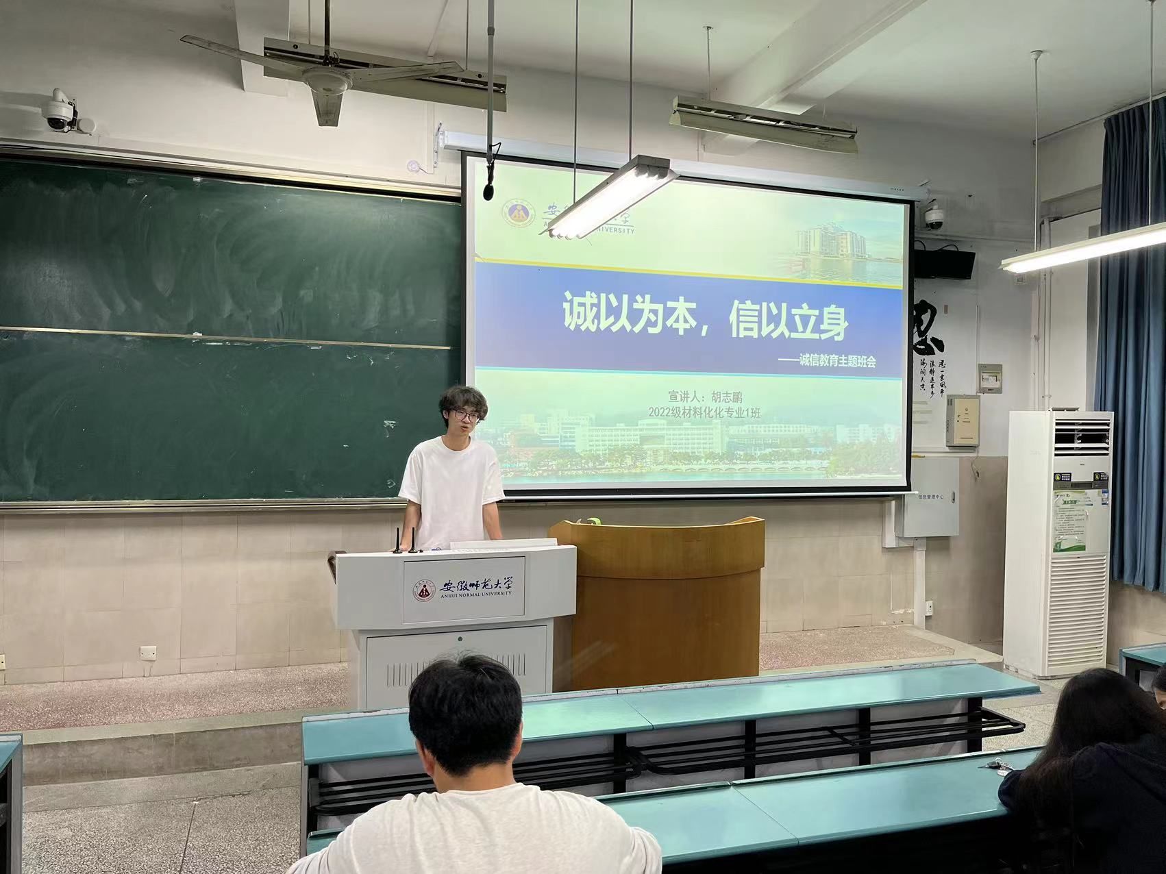 2022级材料化学1班、2班在2020101和2020102召开了“诚以为本,信以立身”主题班会,会议由1班班长胡志鹏和2班团支书许一鸣主讲,全体2022级材料化学专业本科生参加。