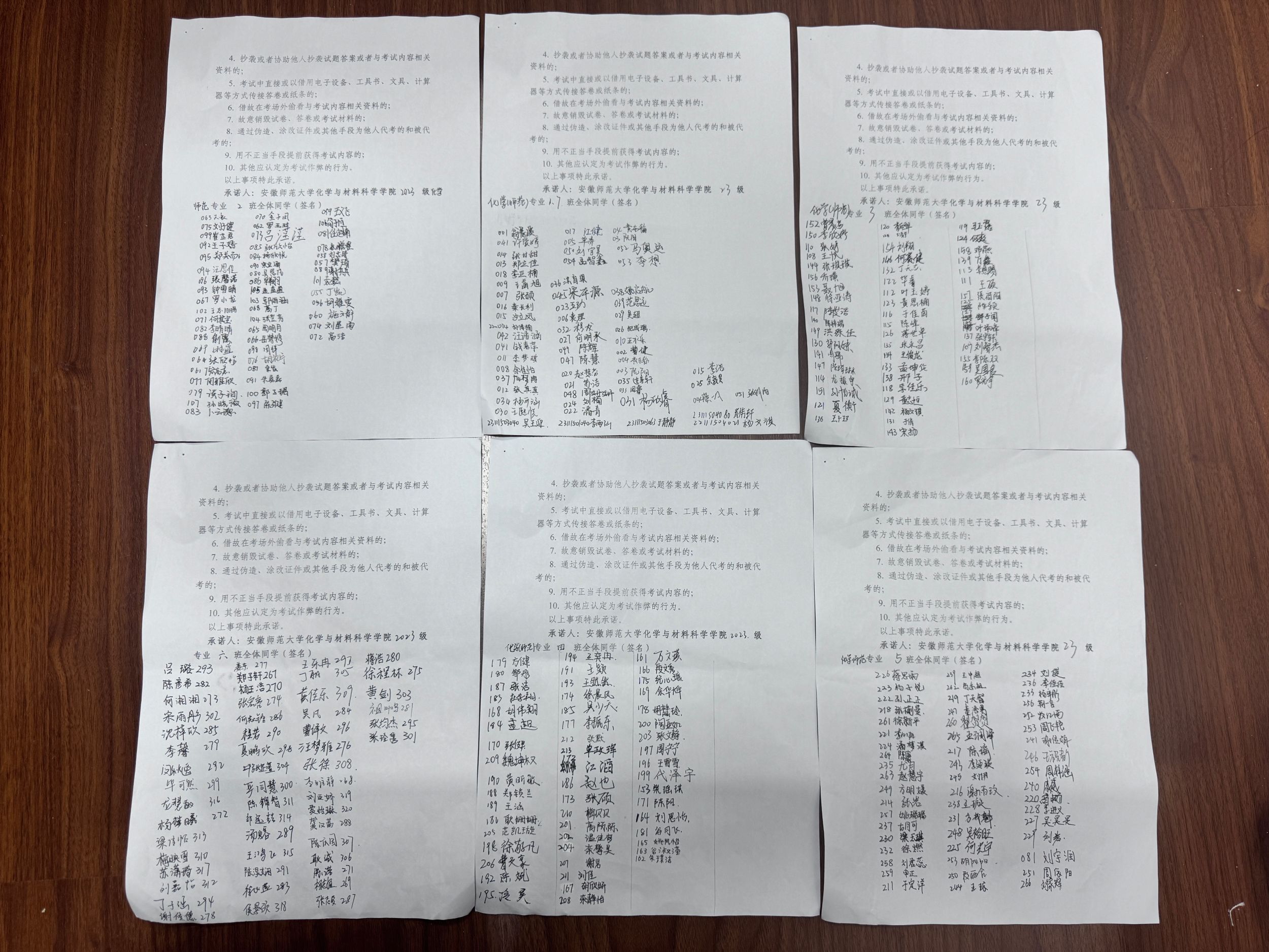 随后,辅导员号召同学们签订“诚信考试承诺书”,告诫同学们要充分把握复习时间通过考试可以有效地帮助同学们查缺补漏,更好地学习知识,期末考试期间也应继续加强晚点名,遵守纪律。