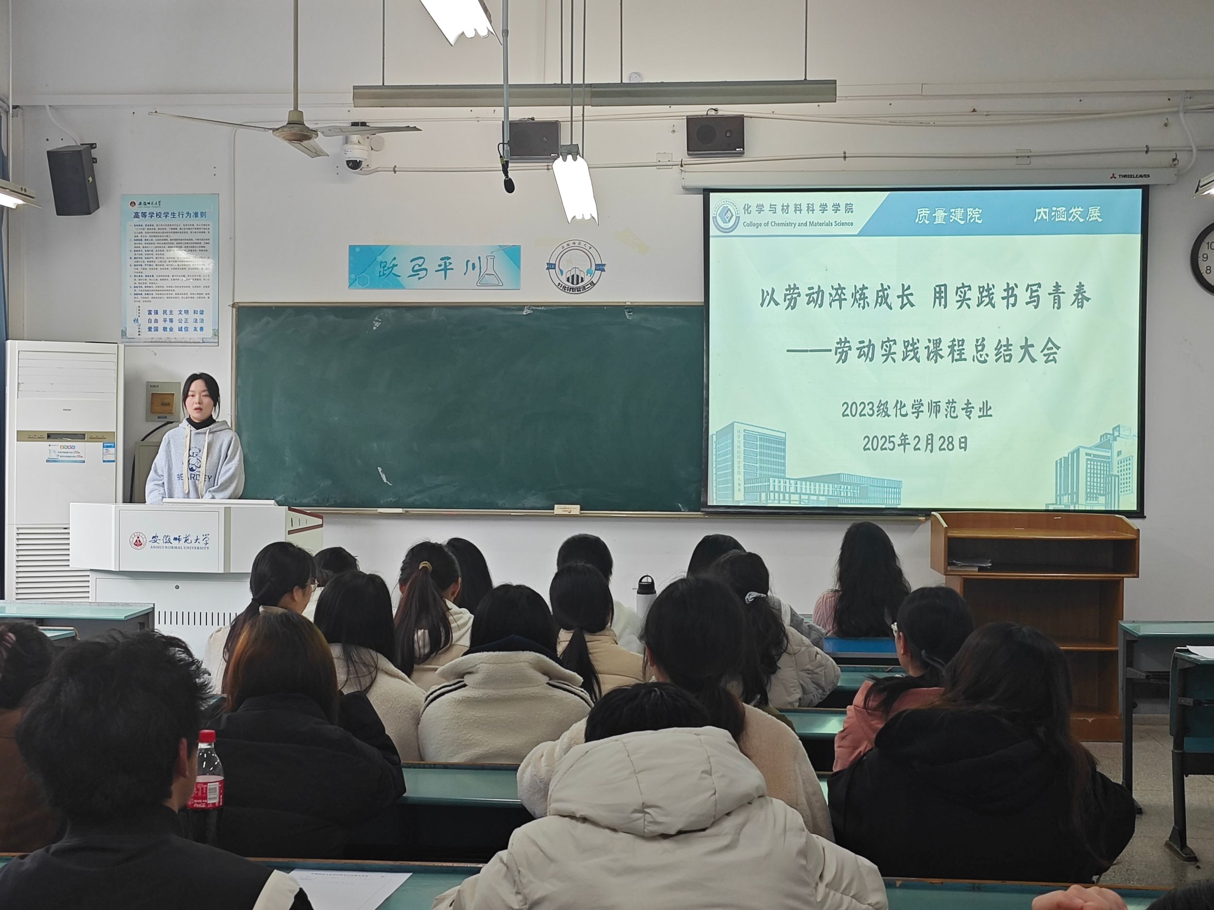 为全面落实新时代劳动育人要求,引导学生树立正确劳动观,2023级化学(师范)专业开展为期一周的劳动实践课程,通过动员大会、实践开展与总结大会的完整闭环,推动劳动教育走深走实,让学生在躬身实践中收获成长。