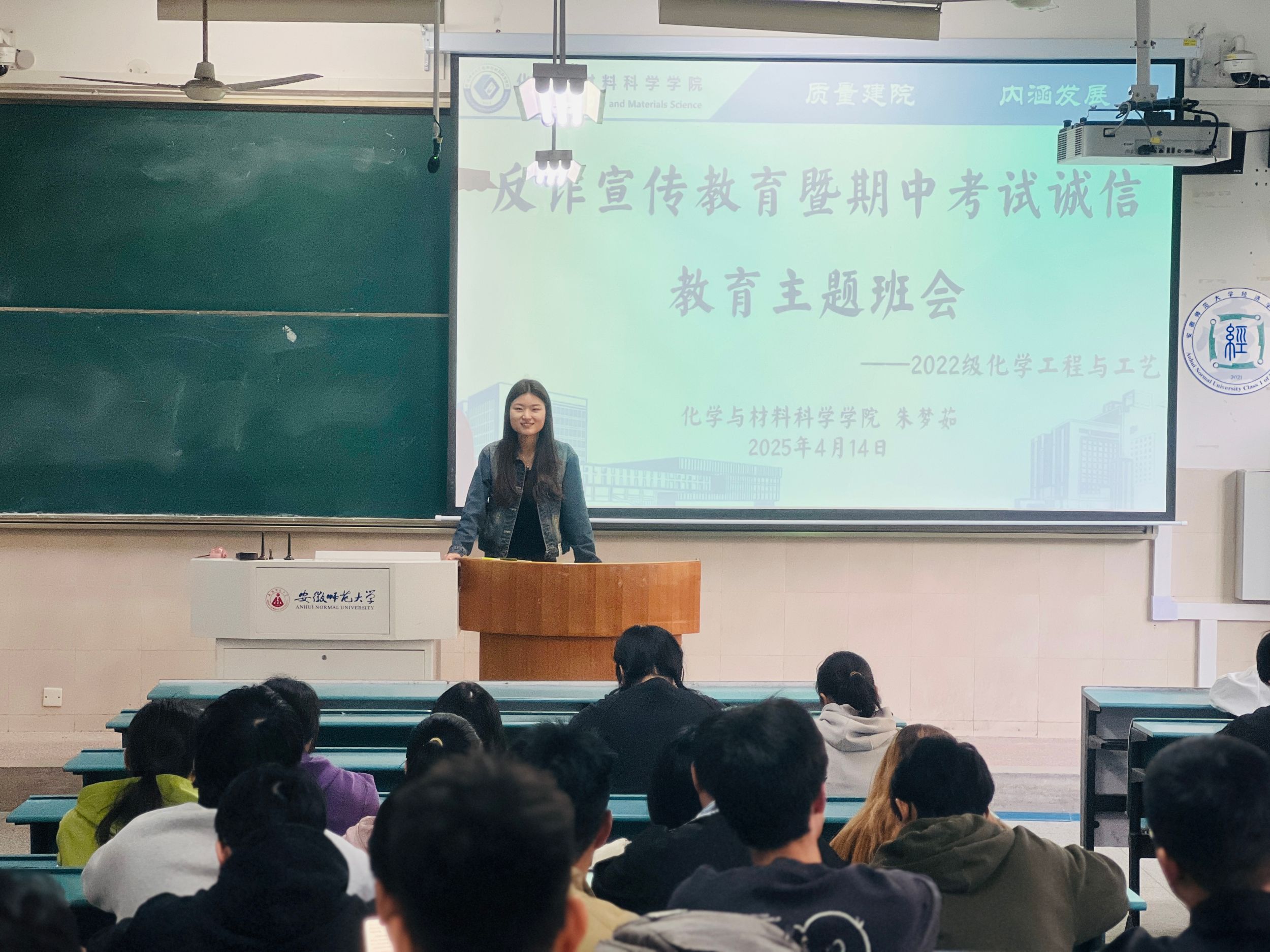 朱梦茹)2025年4月14日化学工程与工艺专业在教室2020201开展了反诈宣传教育暨期中考试诚信教育主题班会。此次班会旨在提高同学们的防诈骗意识,增强自我保护能力,诚信考试,营造安全和谐的校园环境。班会由辅导员朱老师主持,全体班级同学积极参与。