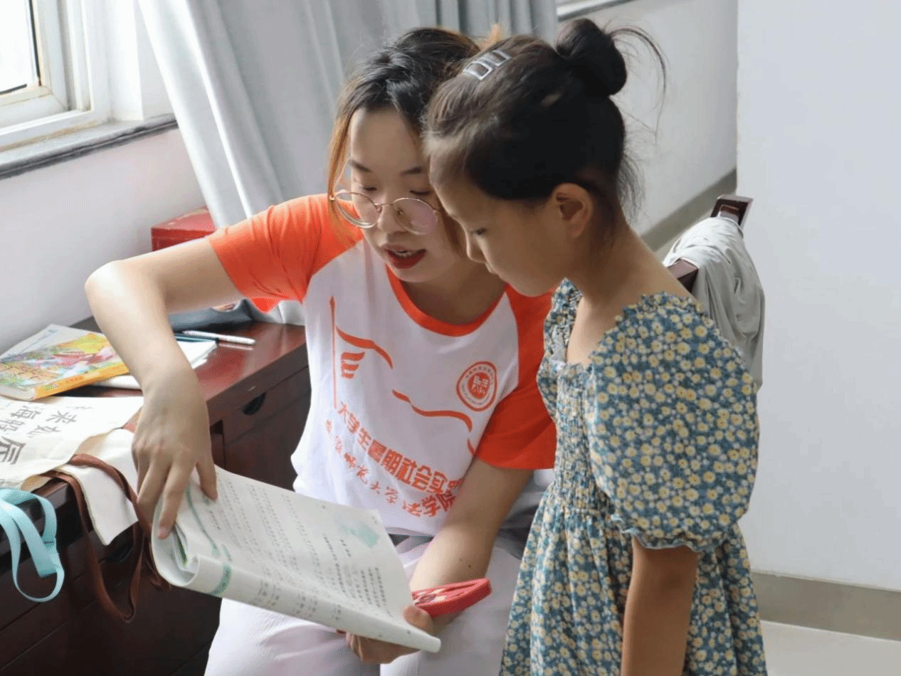 大二暑假,她跟随“青萌”团队前往芜湖市龙华社区进行全日制教育托管服务。她为社区儿童提供一对一的课业辅导,耐心讲解数学难题;她积极参与策划红色主题教育,在孩子们心中播撒爱国主义的种子;她精心策划并开展了“我的小星球”主题绘画活动,锻炼孩子的想象能力与创作能力。