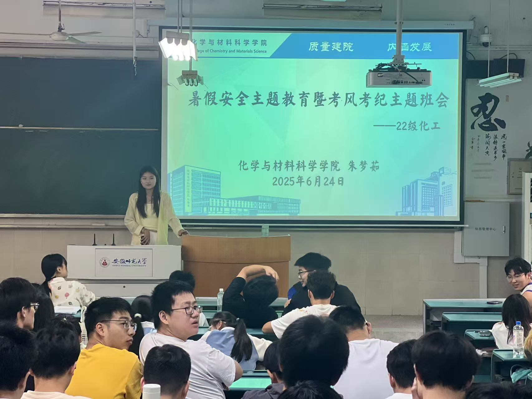 2022级化工专业于2020101召开暑假安全教育主题班会暨考风考纪主题班会。此次班会由辅导员朱梦茹老师主持,全体学生积极参与。