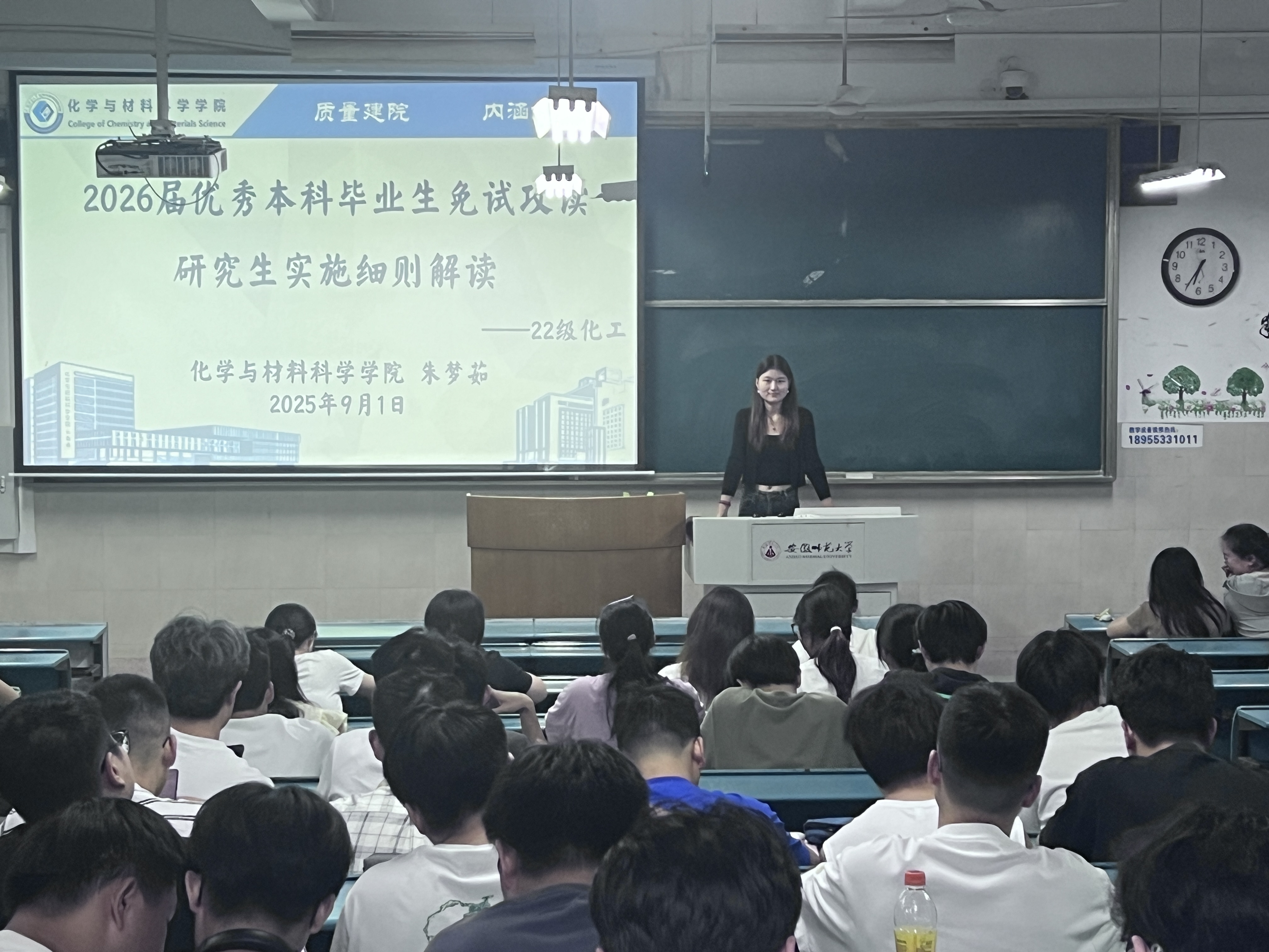 汤雷)2025年9月1日,2022级化学工程与工艺专业在2020104教室,辅导员朱梦茹组织开展了优秀本科毕业生免试攻读研究生的最新政策与实施细则,明确备考方向与申请流程,全班同学共同参与。