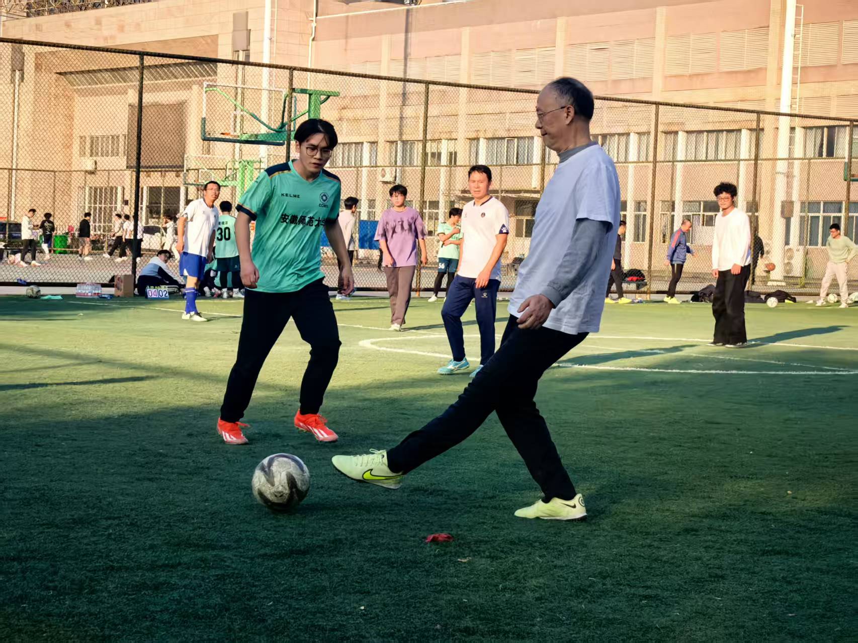 为让每位参赛队员充分参与其中、感受足球运动的乐趣,比赛期间双方适时进行球员轮换,既保证了赛事的观赏性与竞技性,更让师生在并肩作战中增进了解、加深情谊。学生们在赛场上学到了老师们沉稳坚毅的心态,老师们也感受到了学子们敢打敢拼的青春活力,一踢一传中传递着协作力量,一步一守里凝聚着师生深情。最终,教师队以5:4的比分略胜学生队,这场充满激情与温情的师生友谊赛在友好和谐的氛围中画上圆满句号。