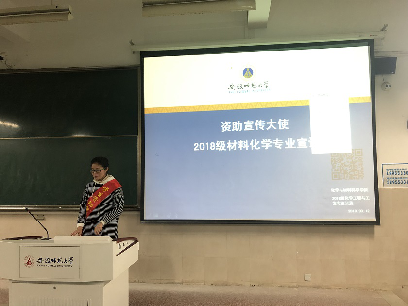 本网讯(18材料化学 严殊颜)3月13日晚上7点,全体18级材料化学同学在2030403教室参加了有关学生资助政策的主题宣讲会。本次宣讲由16级化学工程与工艺的学姐吕潇主讲,吕潇学姐为同学们介绍了安徽师范大学设立的各项奖学金,其中包括有国家奖学金、国家励志奖学金、敬文奖学金、陈礼勤奖学金等等。吕潇学姐鼓励同学们努力学习,并且分享了自己的学习经验,告诫同学们不要荒废自己的大学生活。