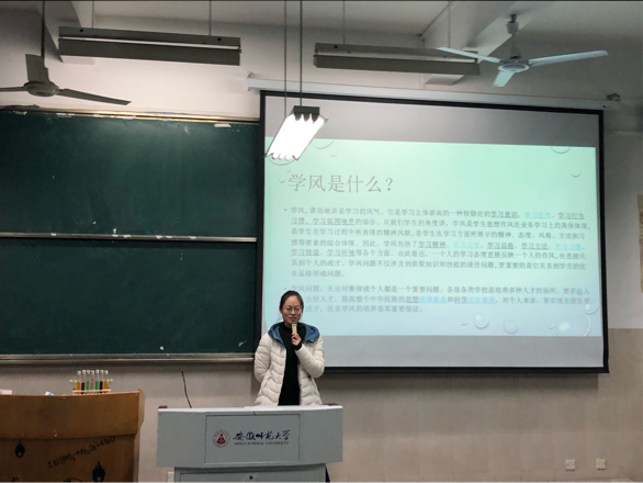 本网讯(18材料化学 朱莹珊)2018年12月12日晚七点,在行知楼2030103教室材料化学二班开展了主题为“学风建设”的主题班会。本次主题班会由学习委员曾繁轩同学主持进行,参加本次活动人员为材料化学二班全体同学。
