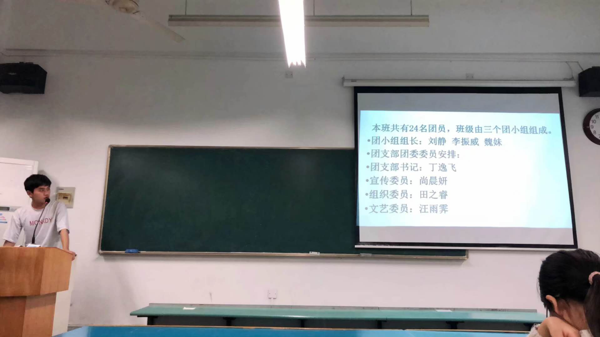 本网讯(18化学中外 尚晨妍)10月12日下午5点,2018级化学中外合作班在教室举行了第一次班级团支部大会。首先由团支书丁逸飞同学上台致辞,随后我班三个团小组组长李振威、刘静和魏妹同学分别进行了深刻的团员思想教育发言,发扬了“不忘初心,牢记使命”的社会主义精神。最后,团支书丁逸飞同学对组长们的发言进行总结,明确使命,坚定信念,激励大家继承和弘扬共青团的光荣传统。