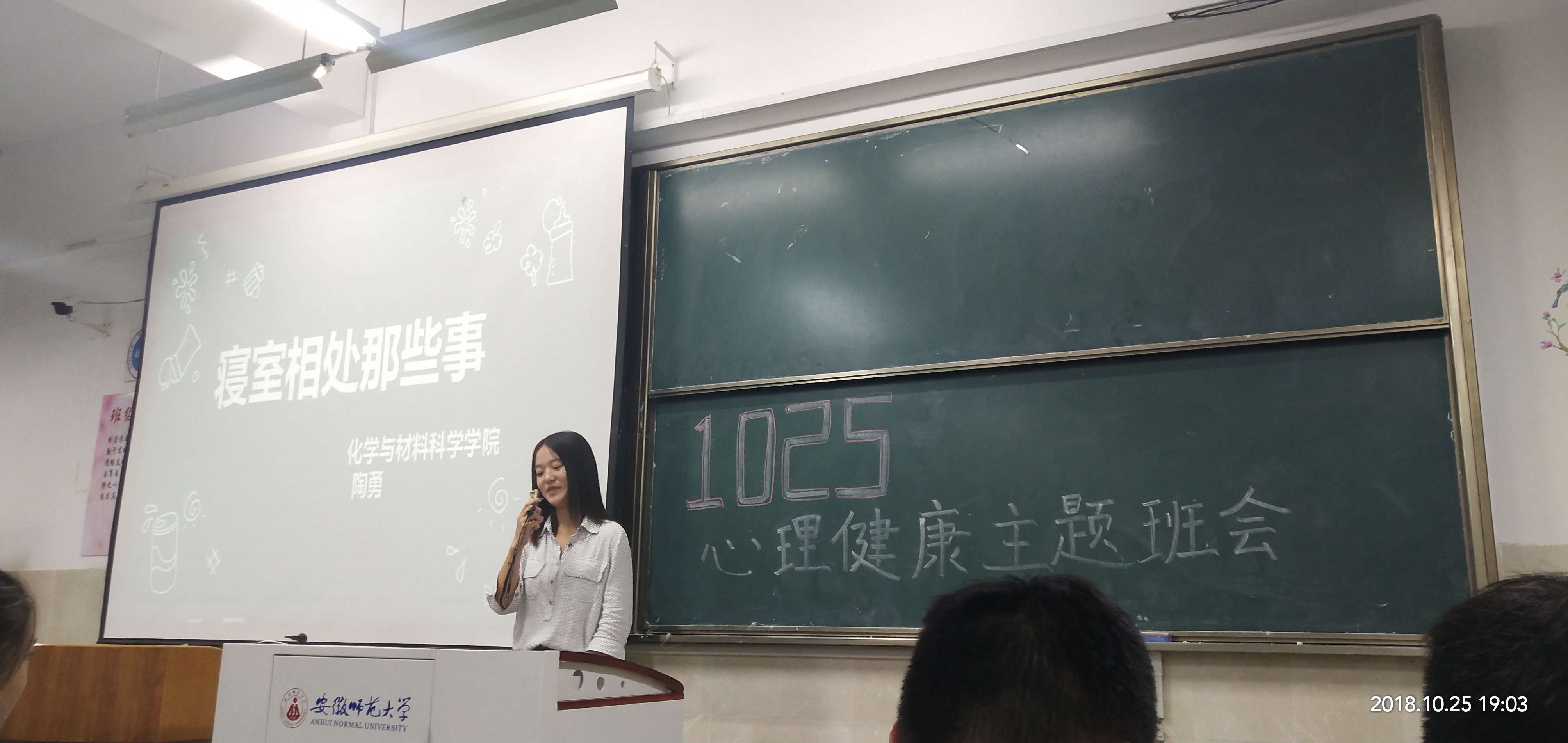 本网讯(18应用化学2班 王琦)2018年10月25日晚7点,18级应用化学专业全体同学开展了心理健康教育班会,活动由1班心理健康委员李子君和2班心理健康委员肖凡共同主持。普及心理健康知识,增强大学生的自我心理调适能力,帮助大学生解决身心发展过程中的心理问题,这是提高大学生的心理健康水平和综合素质、促进大学生健康成长、全面发展的重要方式。 为了更加符合大学生的实际,班级开展了以“寝室相处那些事”为主题的教育活动。通过ppt 内容展示,我们先从实际案例中了解到了寝室问题存在的普遍性,然后从社会调查里,总结出了寝室问题出现的一些常见问题,最后提出了一些方法措施。“沟通是解决一切事端的最有用的方法”,心健委员的这句话很短小确值得我们回味良久。 在班会进行过程中,对于“舍友为你做了哪些事让你很感动”我们进行了讨论,有多个同学举手发言,纷纷说出了自己心底的那片小柔软,其实帮舍友打水、买早饭这一件件小事都会带给别人感动。尹小翠同学说:“明明是与她不想干的事情,她却愿意为我付出时间竭尽所能地帮助我,哪怕对她而言真的很麻烦”。对于宿友愿意付出,对于自己能对宿友付出报以感激,良好关系的建立需要的是双方的体谅与配合。 最后同学们共同鉴赏了《心灵捕手》这一影片。从这个影片里,我们感受到很多,心灵捕手,每个人都想看透别人在想什么,每个人同时都不想被别人看透,每个人有着自己的故事,痛苦,有自己不想为人所知的伤口,但是我们要能够有勇气去感觉生活、更用心地应对世界,勇敢地踏上追求真爱并与红尘相容的人生之路。 一部电影,一次主题班会可能无法一时半会儿改变我们的心理状态,但是我们从中即使学到一点或者触碰到你的内心,这次班会便已取得成功了。我们的改变或许悄然无息,但它一定存在。