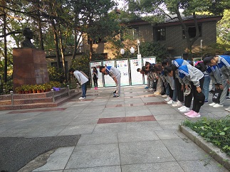 本网讯(17应用化学 陈畅)为了丰富课余生活,让同学们更好的了解团的知识,增强团支部凝聚力,17级应化1班举办了新生团建系列活动。 三证颁发,坚定信念 为缅怀革命先烈,学习革命精神,增强班级的凝聚力,10月28日下午,17应化1班在王稼祥纪念馆举行了三证颁发活动。在仪式中,当全体同学迎接团旗的那一刻,大家都十分严肃,都以自己的行动表达对这一刻的尊崇。大家重温了入团誓词,让团员们重新体验了入团时的那份责任与担当。接着,14级的党员同学为大家颁发了团员证、佩戴了团徽。最后,全体同学一起参观了王稼祥纪念馆,了解了革命先烈王稼祥的生平故事。 青春三走,飞扬活力 为响应学校“青春三走”号召,丰富当代大学生的课余生活,班级开展了青春三走活动,大家在学校操场上学唱团歌“光荣啊!中国共青团”,同学们都激情洋溢,认真唱歌,体现出了同学们争当优秀共青团员的决心。 此外,班级还开展了各种体育活动,如夹气球游戏、爱的抱抱、五人绑腿跑步环节,同学们彻底放开了拘束感,积极参加,操场洋溢着欢乐的氛围,活动不仅让同学们锻炼了身体、更增强了班级的凝聚力。