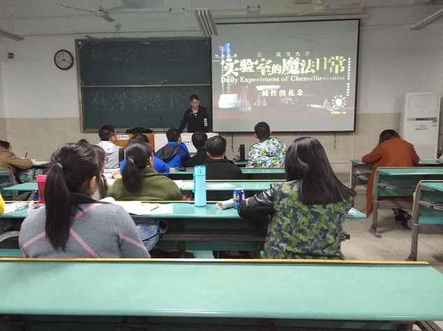 为进一步加强化学理论教学,培养学生科学素养。11月27日晚,17级应用化学1班在行知楼2010501教室开展了以“科学改变生活,化学创造价值”为主题的班会,本次班会由副班长郭胜楠主持。 班会伊始,郭胜楠从化学与生活、化学的应用、化学与价值这三个方面对化学展开有关介绍,介绍贯穿生活中的化学小知识,以PPT的形式将趣味化学、化学的应用及生活小窍门等内容进行讲解。此外,班会还通过播放电影《疯狂化学》部分视频片段,让学大家在快乐中学习化学知识。班会最后还进行了化学知识竞答。本次的主题班会的开展,大家不仅学习到了化学知识,又提升了对化学学习的浓厚兴趣。