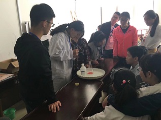 科普活动分为PPT宣讲和趣味实验演示两个环节。首先,志愿者们为小朋友们讲解以“预防流感,健康成长”为主题的PPT。在此期间,小朋友们认真听讲,积极回答问题。此外,两位志愿者还向小朋友们示范了正确洗手的姿势。志愿者们还邀请了几位小朋友上台尝试。以这些日常生活中的小细节为素材不仅形象生动地向小朋友们科普了预防流感的知识,还激发了小朋友们的兴趣,使孩子们切有所得。