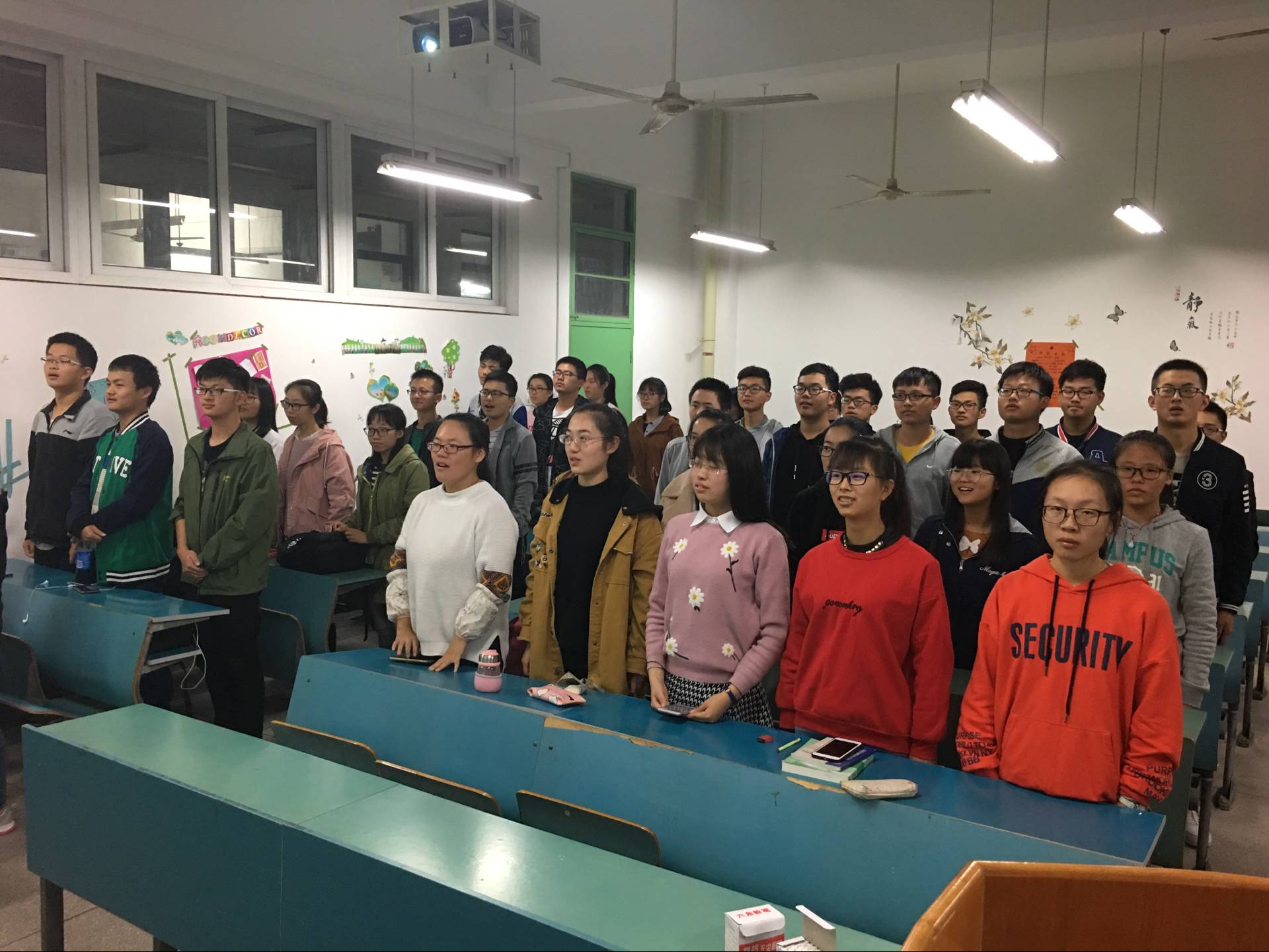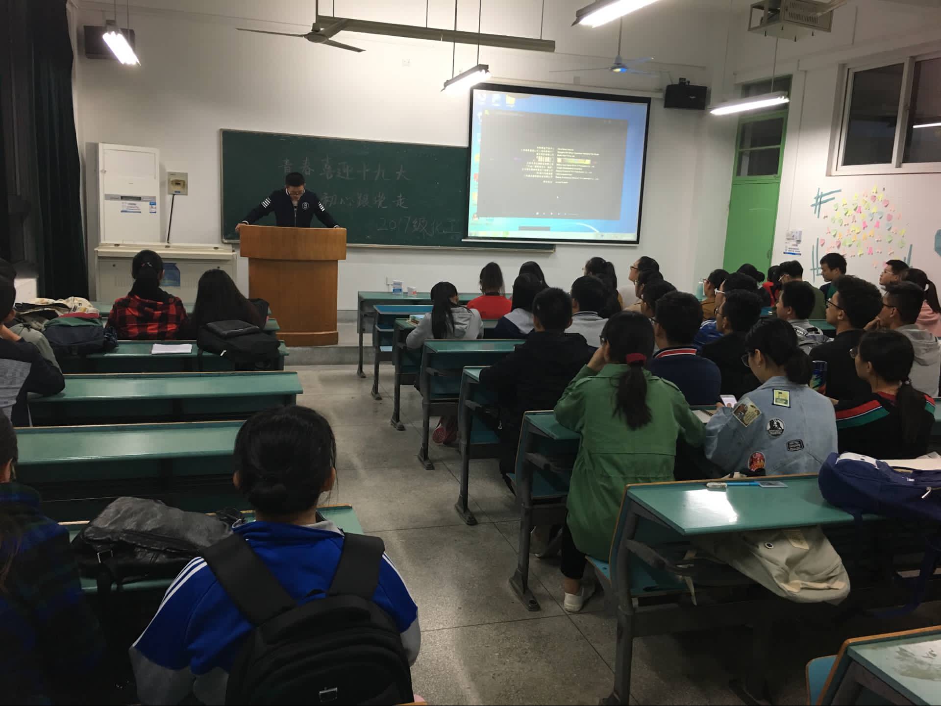 本网讯 (方子妍)10月19日晚,秋夜的寒气丝丝渗入心脾,但依然难掩同学们脸上的喜悦与热情。为积极响应中国共产党第十九次全国代表大会的顺利召开,紧随时代发展的潮流,展现当代大学生的风采,17级化工一班于今晚召开了本学期的第一次团日活动。
