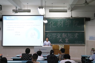 比赛开始,各组选手分主题进行了PPt汇报。有的同学以文献检索在翻转课堂具体应用为例,用论文展示了自己学习成果,生动描述检索过程中实际的应用收获;有的选手就文献检索考察纳米材料对重金属吸附作用,介绍文献检索的大致方法,总结自己文献检索的技巧;有的从光污染对污水降解作用引入,讨论文献检索的作用……答辩环节由评委老师进行提问,考察学生对知识的掌握情况和综合应用。各组演讲内容严谨详实,各具特色,答辩过程精彩,展现了化材学子具备着相当水准的文献检索能力。最终,一等奖由第五组来自