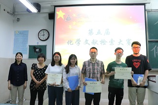 第五届化学文献检索大赛决赛于花津校区2030204教室举行。本次比赛由李一梅老师、王伟智老师、王银玲老师、卓淑娟老师担任评委,共九组选手参赛。决赛分为六分钟演讲和答辩两个环节,最后根据选手总分决出奖项。