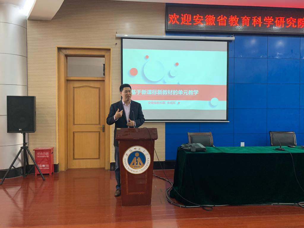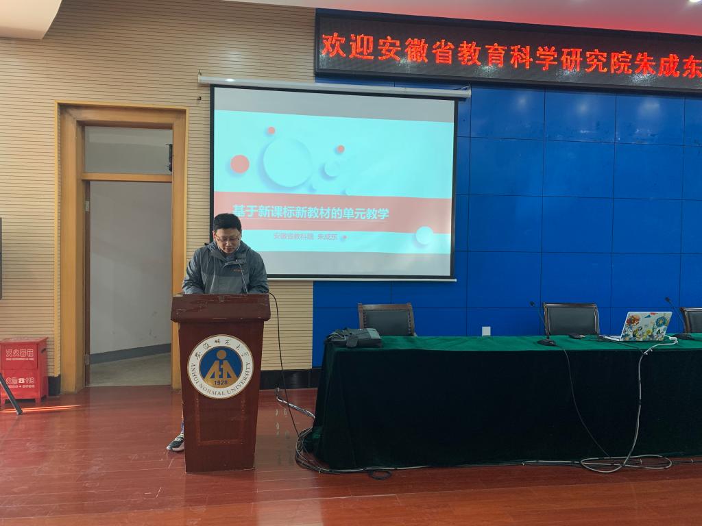 邀请安徽省教育科学研究院化学教研员朱成东作题为《基于新课程新教材的单元教学》的专题报告,这是2020年“中学化学名师讲坛”系列活动的第八讲。报告会在花津校区第三报告厅举行,由篮球比分手机