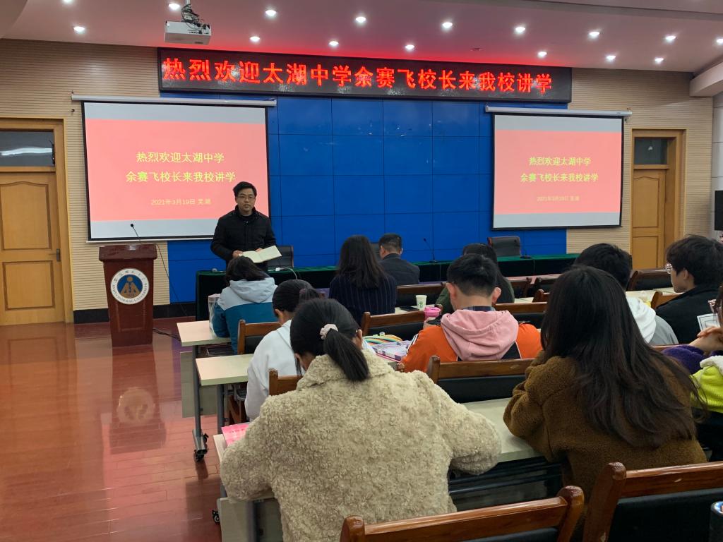 邀请,安徽省太湖中学副校长、中学化学高级教师、安徽省优秀教师余赛飞来院作题为《当教师很快乐》的分享报告,这是2021年“中学化学名师讲坛”系列活动的第一讲。2017、2018级化学专业师范生及部分化学教学论专业研究生和教师参加了此次报告,报告会由篮球比分手机
