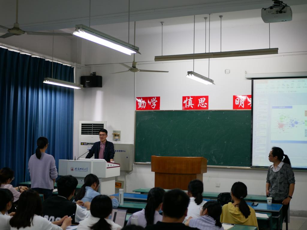叶剑强博士做了题为“MBL对离子反应概念学习过程三重表征的影响”的学术报告。叶博士从研究缘起、研究背景、研究问题、理论基础和结果讨论等方面对MBL和三重表征心智模型进行了详实的阐述。叶博士首先从研究缘起的角度出发详细介绍了国际数字化教学研究的前沿热点,给出了两类常见的数字化实验MBL和SBL并且进一步对其背景进行了讲解。叶博士指出“数字化实验在理科教育中的应用有巨大的潜力,并会对学生产生深远的影响” 。基于此叶博士对该领域的研究意义进行了讲解,并且给出了基于大量文献阅读后的共现分析,给出了世界范围中该领域的相关研究历程与聚类,并分享了从中获得的多点启示。在之后的汇报中叶博士将自己在此领域发表的文章从头至尾进行了全面的剖析,给大家展现了一篇优秀学术论文的诞生过程和写作思路,尤其强调了确定选题意义和研究背景的重要性。提出了先确定研究背景,再从学术的角度确定研究问题进行相关研究的研究思路。会后,叶博士就本次报告内容与在座师生进行了热烈的互动交流。
