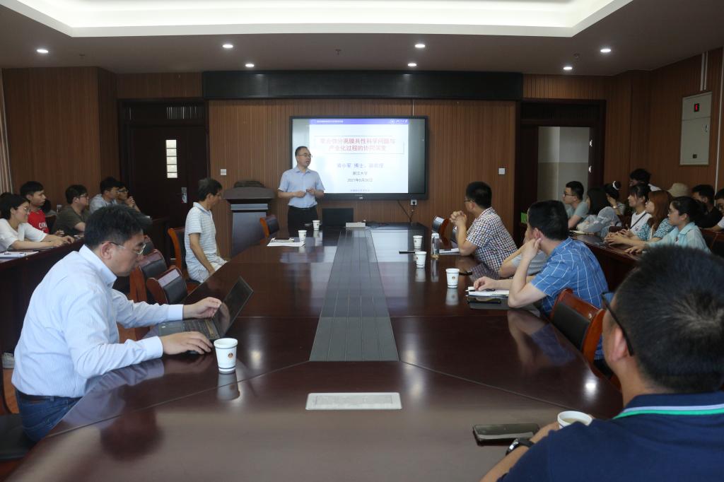 黄小军博士作了题为“聚合物分离膜共性科学问题与产业化过程的协同演变”的学术报告。黄博士首先简要介绍了非对称膜研究及产业化的背景,解释了分离膜在医疗方向的重要作用,接着他详细介绍了其课题组在高性能碳晶合金聚合物分离膜和人工肺-氧合膜方向的研究,并对高性能膜产业发展如何实现提出自己的见解,鼓励与会学生做科研要坚定目标,不畏难关勇于克服。会后,黄博士就报告内容与在座师生进行了热烈的交流活动。
