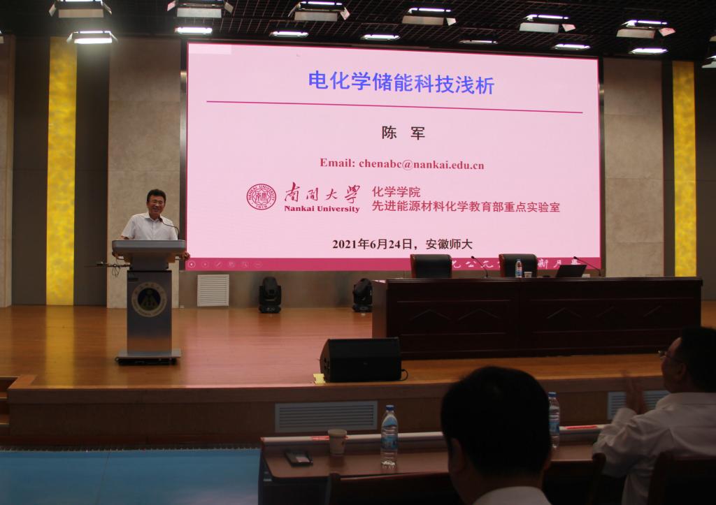 孙健)应学校邀请,6月24日晚在花津校区实习实训中心一楼报告厅,南开大学副校长、中科院院士陈军来校作了题为“电化学储能科技浅析”的学术报告。报告会前,学校党委副书记、校长张庆亮亲切会见了陈军院士,感谢陈院士长期以来对安徽师范大学学科建设的支持!报告会由篮球比分手机