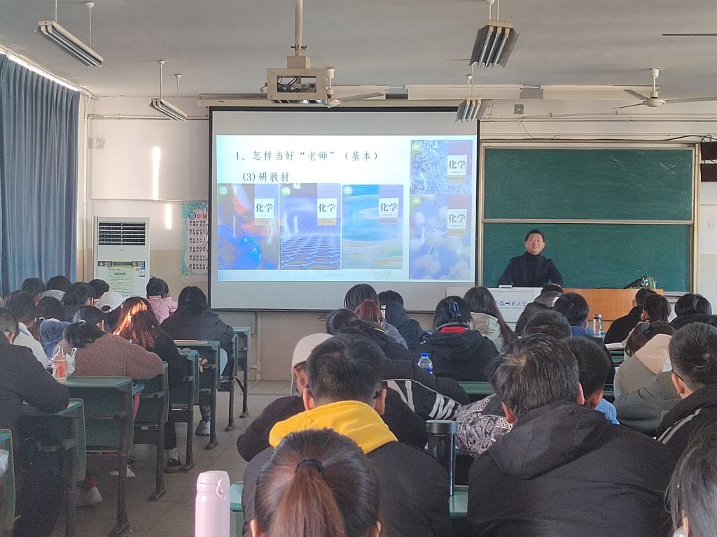 化学系主任阙荣辉副教授主持讲座,2018级化学专业师范生、化学教学论专业研究生及部分化学教学论专业教师共百余人参加了此次报告。