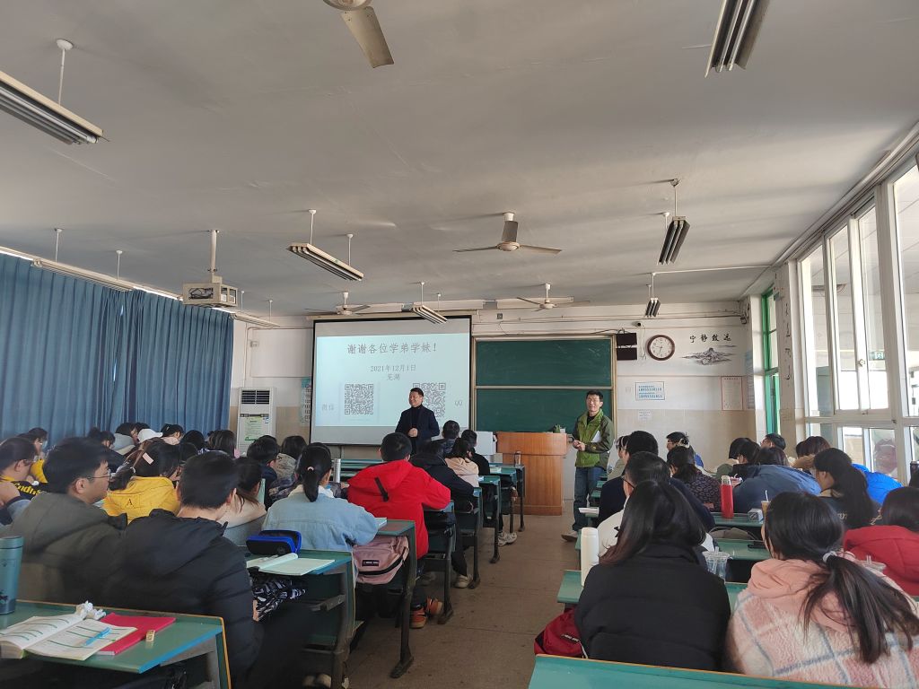 张春提出要当一名好老师,首先应加强自身的基本功,如练好字、说好话、研教材、常做题、精备课、站稳台等几个方面;其次还应不断提升自己,尤其在专业知识、深度学习、学生家长及同行的认可,且要学会自我悦纳。同学们可以通过读书、听讲座报告、磨课、反思等方面来加速自身成长。报告结束后,同学就自己感兴趣的问题与张春进行热烈的交流讨论。